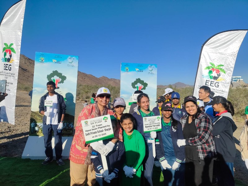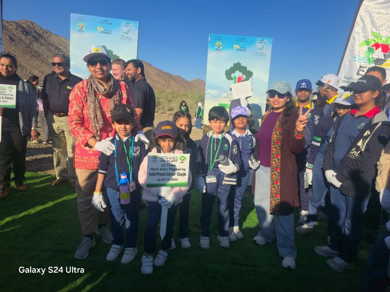On December 23, 2025, approximately 50 students from Grades KG1 to 12, alongside staff and parents from Delhi Private School, Sharjah, actively participated in the Emirates Environmental Group’s “For Our Emirates We Plant” campaign in Ras Al Khaimah. This initiative, which aligns with the UAE’s national theme of Sustainability – Community and Family, saw the school rewarded with the planting of 31 trees in recognition of its consistent recycling efforts. Beyond navigating the rocky terrain to fix their commemorative placards, participants engaged in educational sessions regarding beekeeping and local conservation initiatives. Commended by Ms. Habiba Al Marashi for their dedication, the DPSites successfully collaborated with various community stakeholders, marking another significant milestone in the school’s ongoing commitment to environmental stewardship.